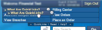 - QuickLinks - Specific to your username (displayed after you sign in)
